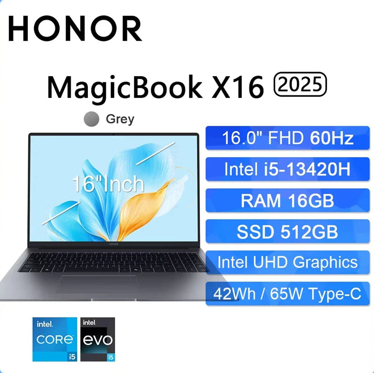 HONOR MagicBook X16 2025 Laptop Intel Core i5-13420H i7-13620H RAM 16GB SSD 512GB 1TB 16"Inch FHD Notebook Ultrabook Computer PC i5 13420H 8GB 512GB Best Price 2025 | Munawar Tech