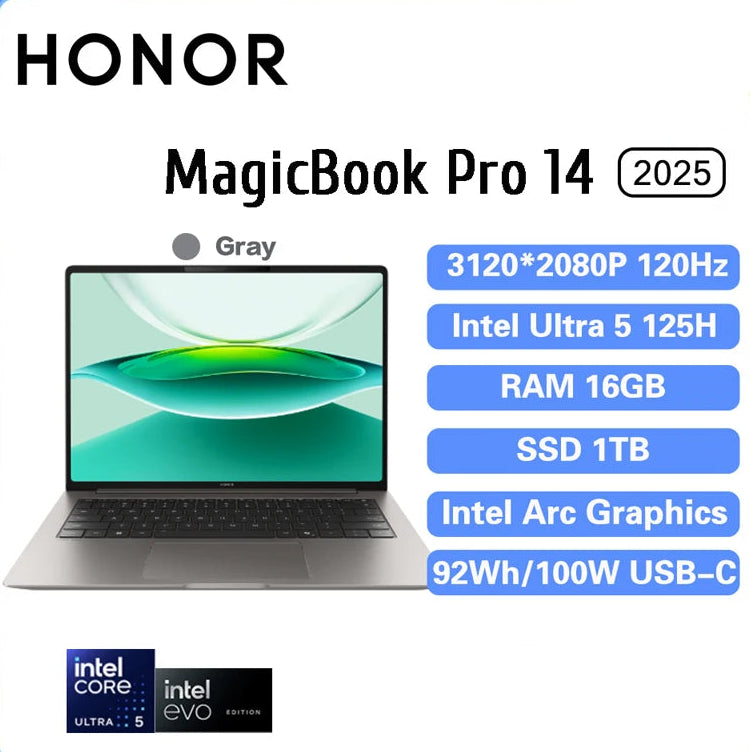 2025 NEW Honor MagicBook Pro 14 Laptop 14.6-inch U5-125H 16G/24G 1T 3.1K Screen 92Wh Computer PC Notebook Ultrabook Grey U5-225H 24G 1T Best Price 2025 | Munawar Tech