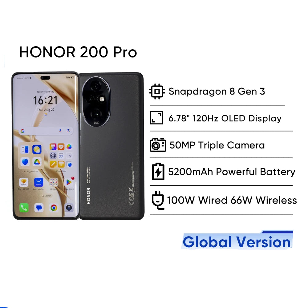 HONOR 200 Pro Global Version Snapdragon 8s Gen 3 5G Smartphone 6.78'' 120Hz AMOLED Display Support HONOR 100W SuperCharge black Best Price 2025 | Munawar Tech