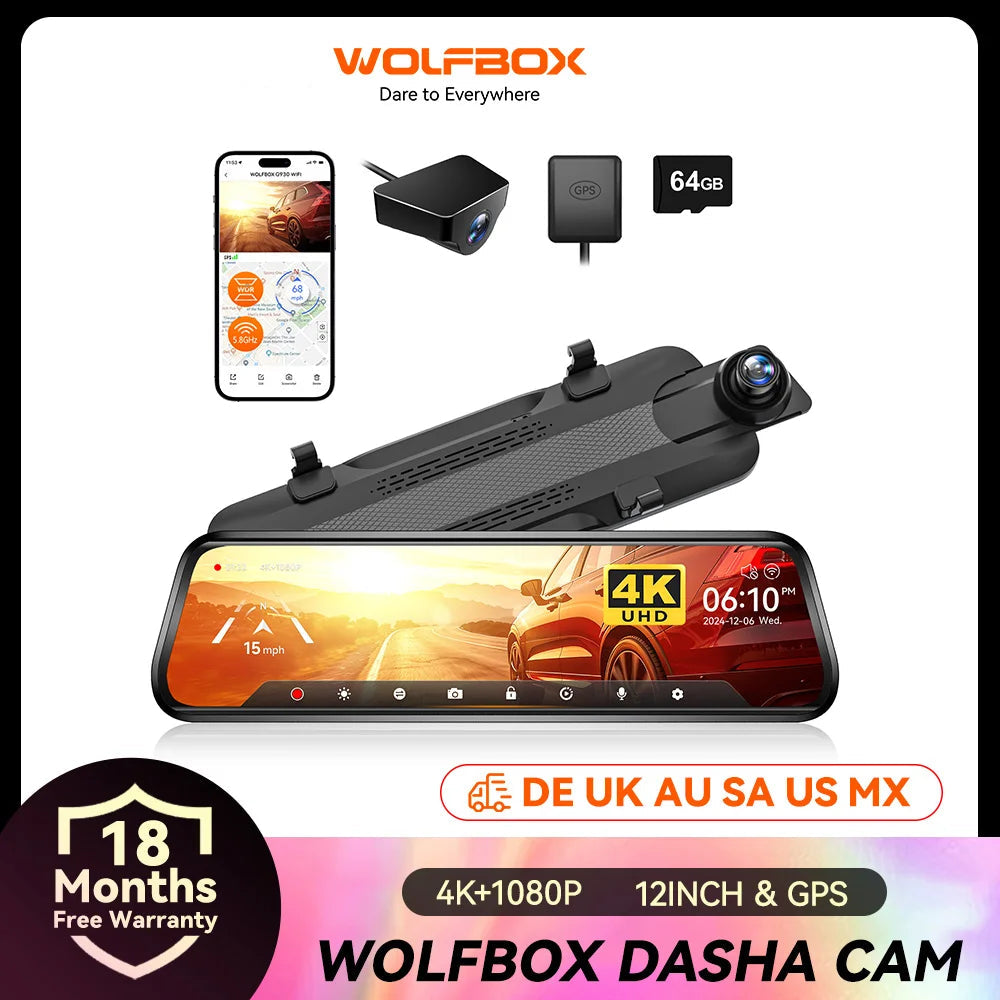 WOLFBOX G930 10 Inch Wifi Dash Camera 4K Car DVR FOV 140 Mirror Camera Dash Cam Car 24H Parking View Touch Screen Video Recorder