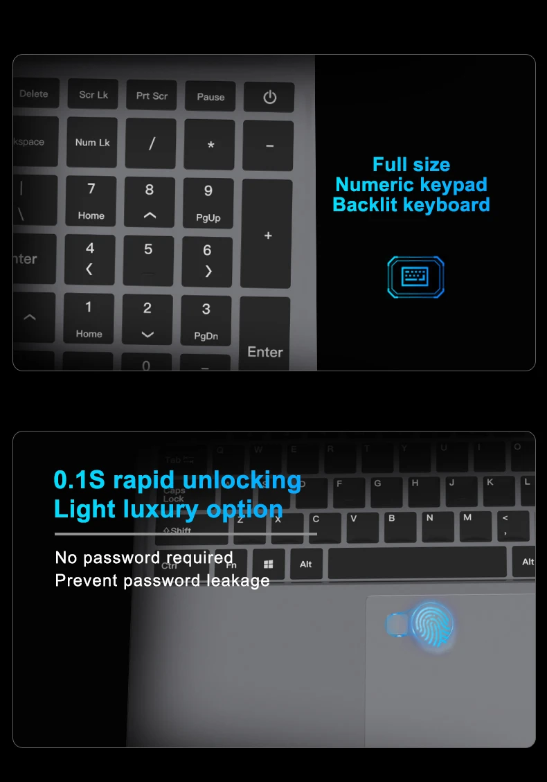 No need to enter a login password; simply touch the fingerprint sensor with your finger for a convenient and secure login, effectively preventing password leakage.