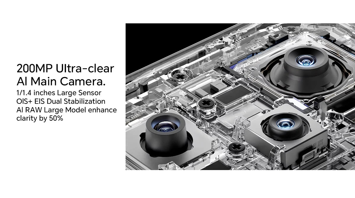200MP Ultra-clear AI Main Camera(f/1.9, OIS)
