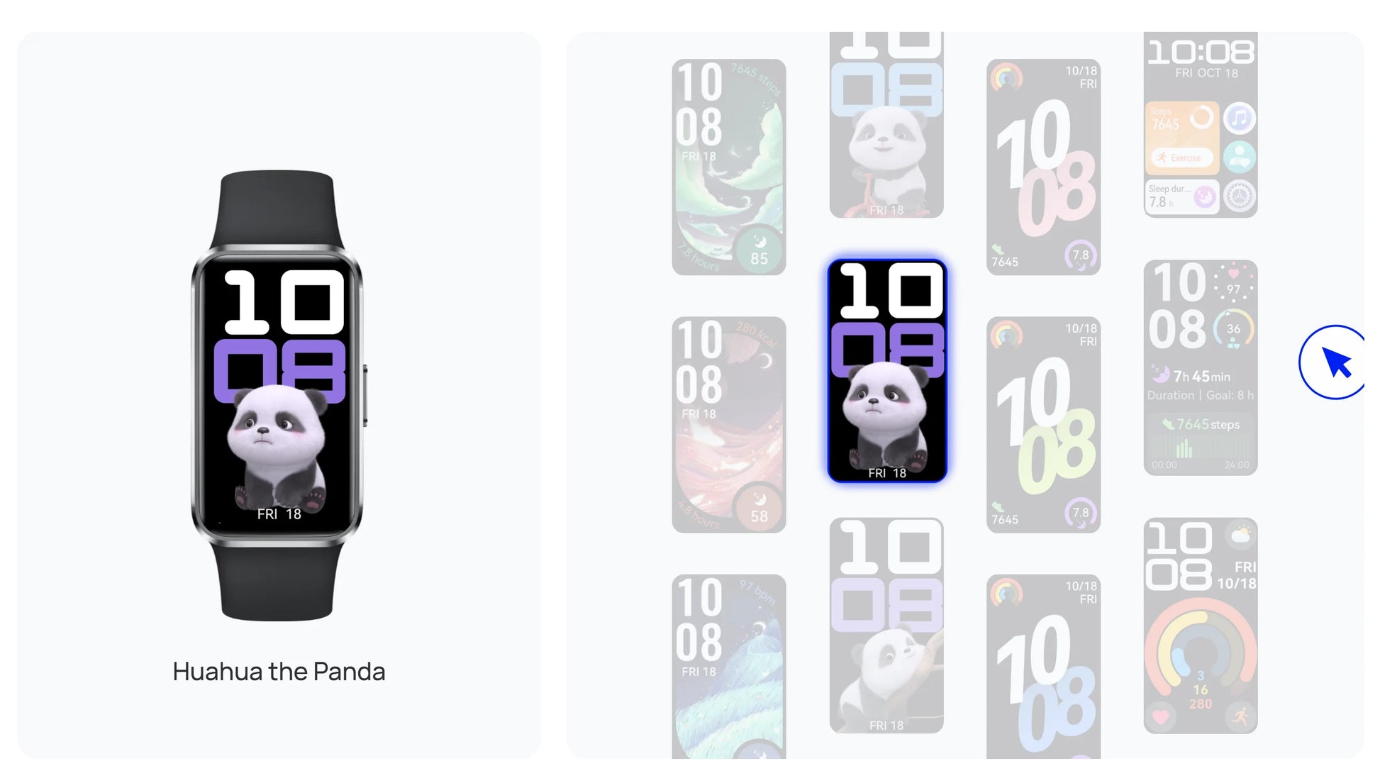 Turn your band into a timeless timepiece with the emotion-themed Huahua the Panda, Starry Vista, Joy Spring, Super Watch, Gallery or Style watch face.8 Take your wrist fashion to the next level with customisable styles, features, and Always on Display (AOD) to make each design uniquely yours.