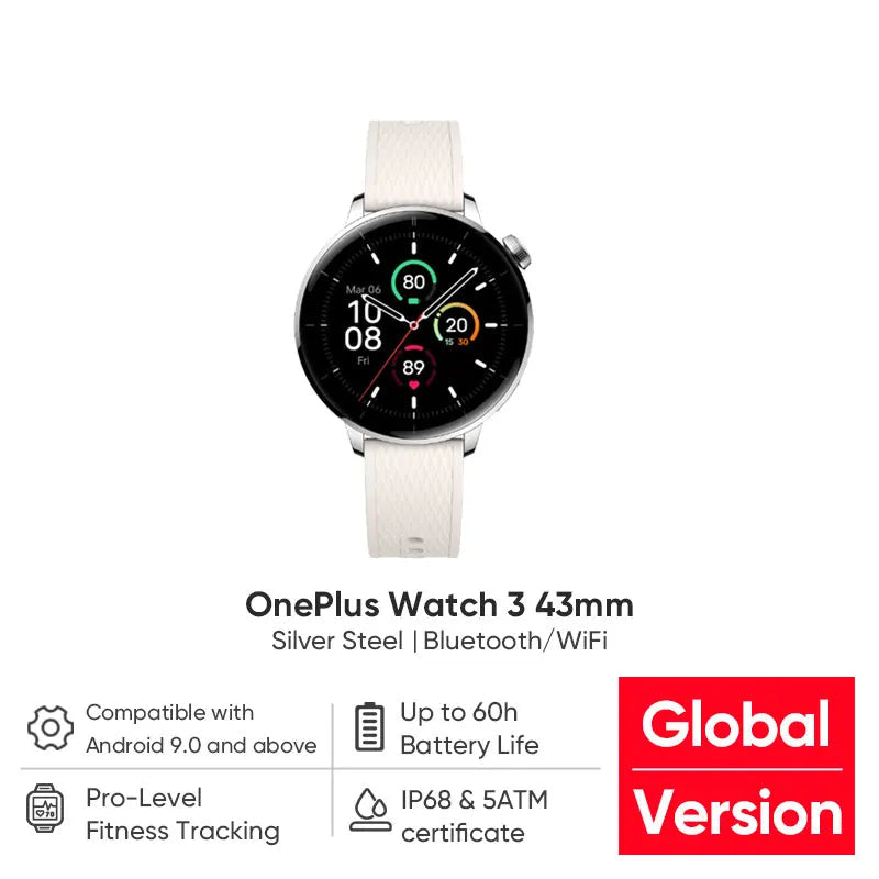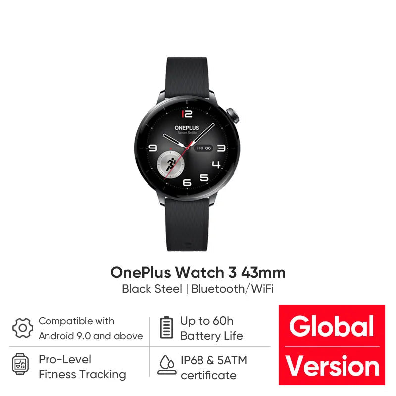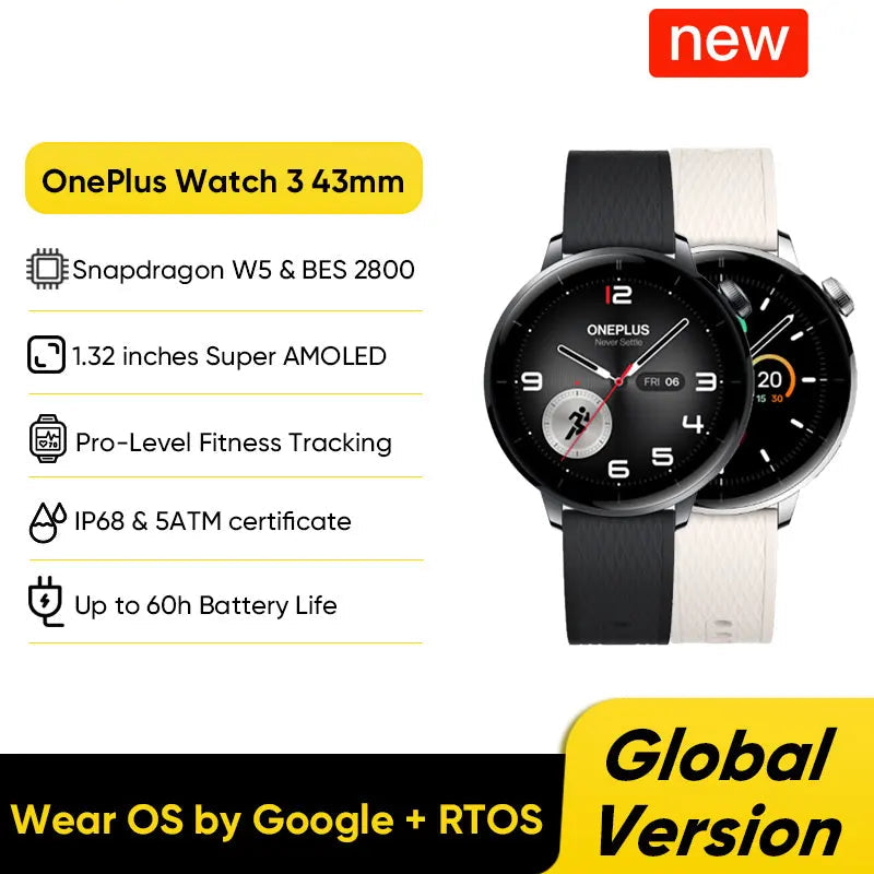 OnePlus Watch 3 43mm Global Version Smart Watch 1.32" AMOLED Display Up to 60h Battery Life Wear OS by Google GPS NFC