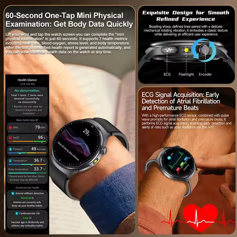 Guhuavmi TK27 Health Smartwatch | ECG HRV Body Analysis | Bluetooth Calling