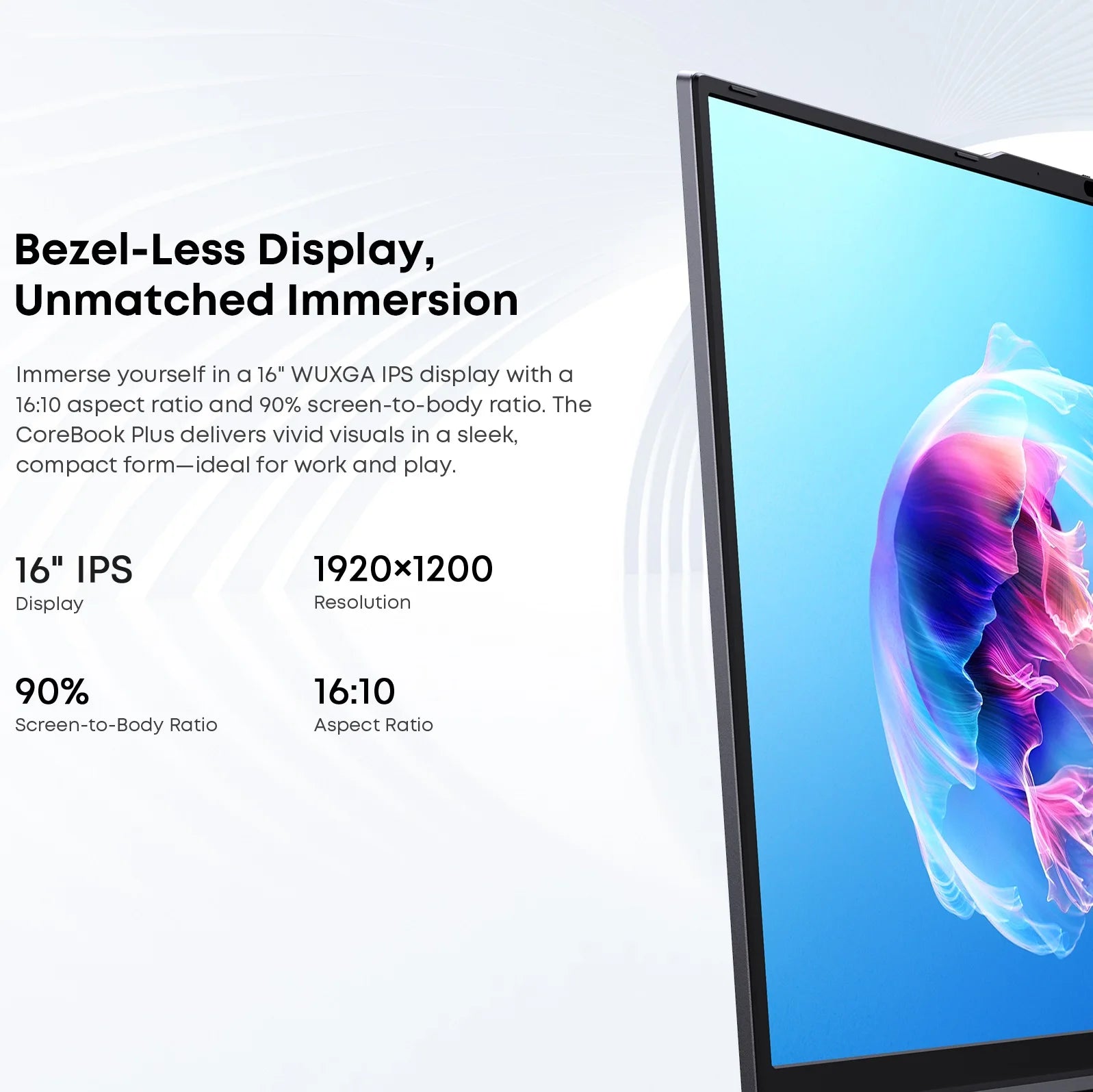 Experience blazing-fast performance with the AMD Ryzen R5 7430U. With 6 cores.12 threads. and up to 4.3 GHz. the CoreBook Plus handles gaming,content creation,and multitasking with ease-smooth,responsive, and ready for anything