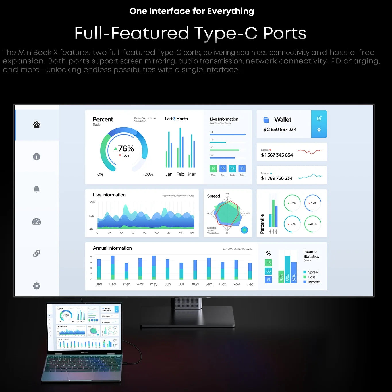 MiniBook X comes equipped with a full-featured Type-C port for easy expansion