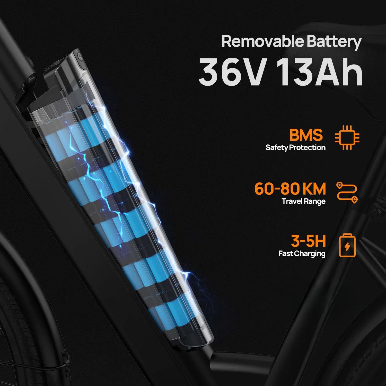 The URLIFE E26 is a versatile electric bike designed for urban commuting and leisurely rides. Equipped with a 250W brushless motor and a 36V 13Ah lithium-ion battery, it offers a smooth and efficient riding experience. The 26-inch tires provide stability and control, making it suitable for various terrains. With a top speed of 25 km/h and a range of up to 80 km on pedal-assist mode, the E26 is an excellent choice for daily commutes and weekend adventures.