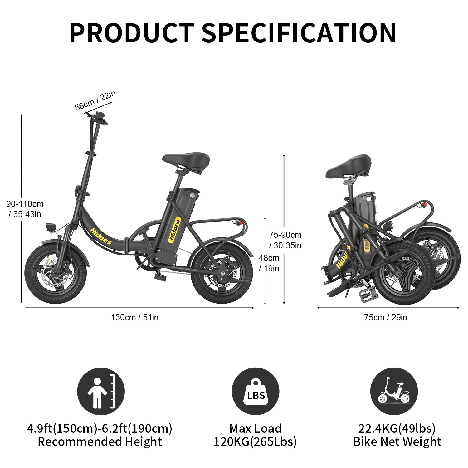 Electric Bicycle Hidoes C5 350W Motor 36V10.4AH Lithium Battery E-bike Adult Children Universal 14-inch Folding Electric Bike