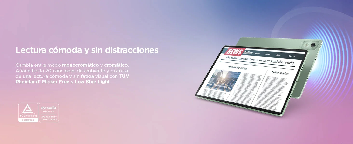 3. Immerse yourself in reading: Explore the depths of your content with colour or monochrome display modes, 20 background music options, and low blue light technology, designed to enhance your reading