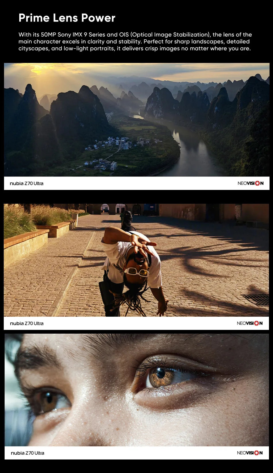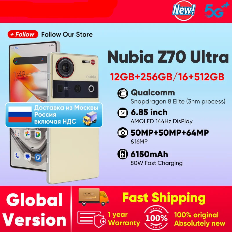 Nubia Z70 Ultra NX733J 5G Global Version Snapdragon 8 Elite 6.85" 144Hz AMOLED Display 6150mAh 80W Fast Charge IP69