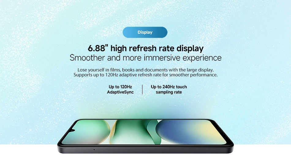 Screen ---------- 6.88" large screen display, Up to 120Hz refresh rate