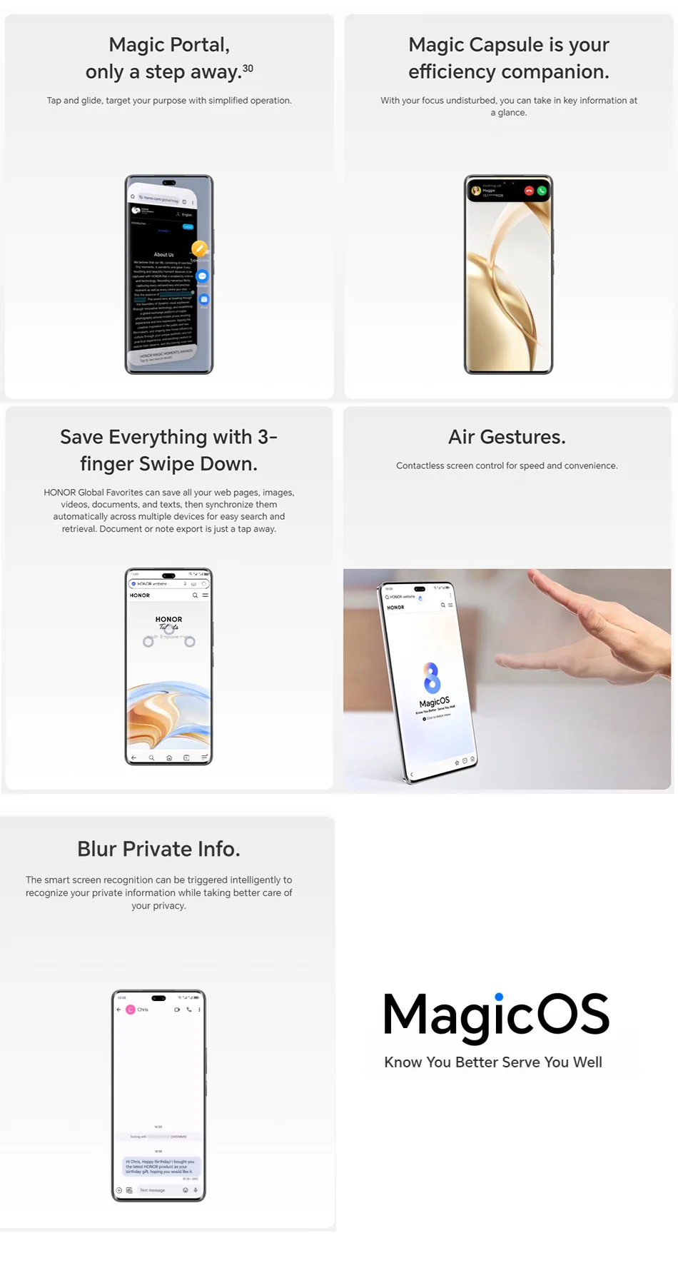 1. OS: MagicOS 8.0 (based on Android 14); Global Version; Supports multiple languages.
