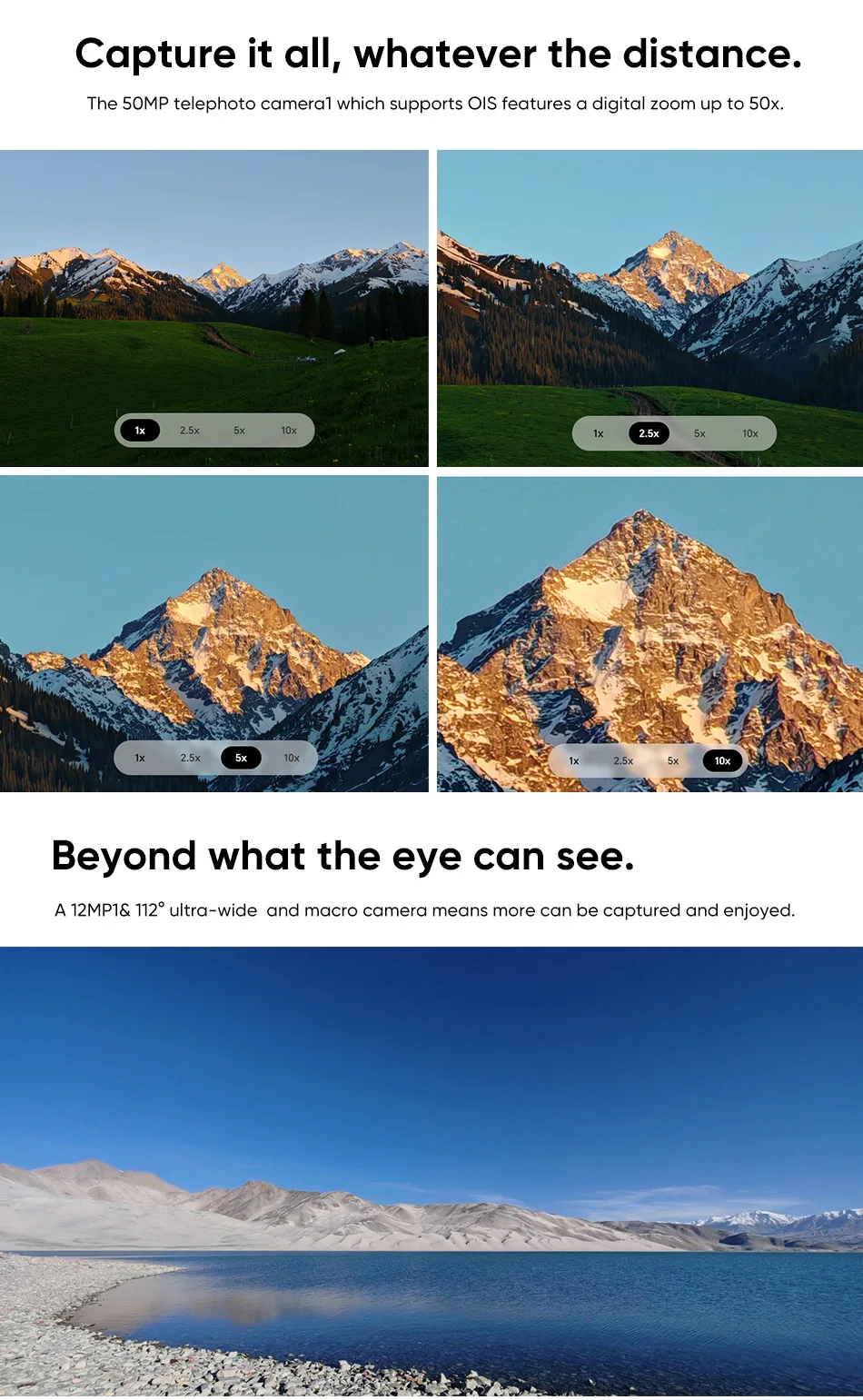 5. Rear Camera --- 50MP wide-angle camera, 50MP telephoto camera, 12MP ultra-wide-angle camera, support 4K video recording (3840 × 2160), image resolution: 8192 × 6144 pixels. Video resolution: 3840 × 2160 pixels. Stabilization mode: EIS + OIS.