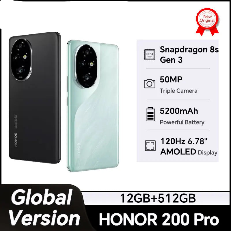 Honor 200 Pro Global Version 6.78'' 5G Smartphone Snapdragon 8s Gen 3 120Hz AMOLED Display 5200mAh Battery 100W SuperCharge