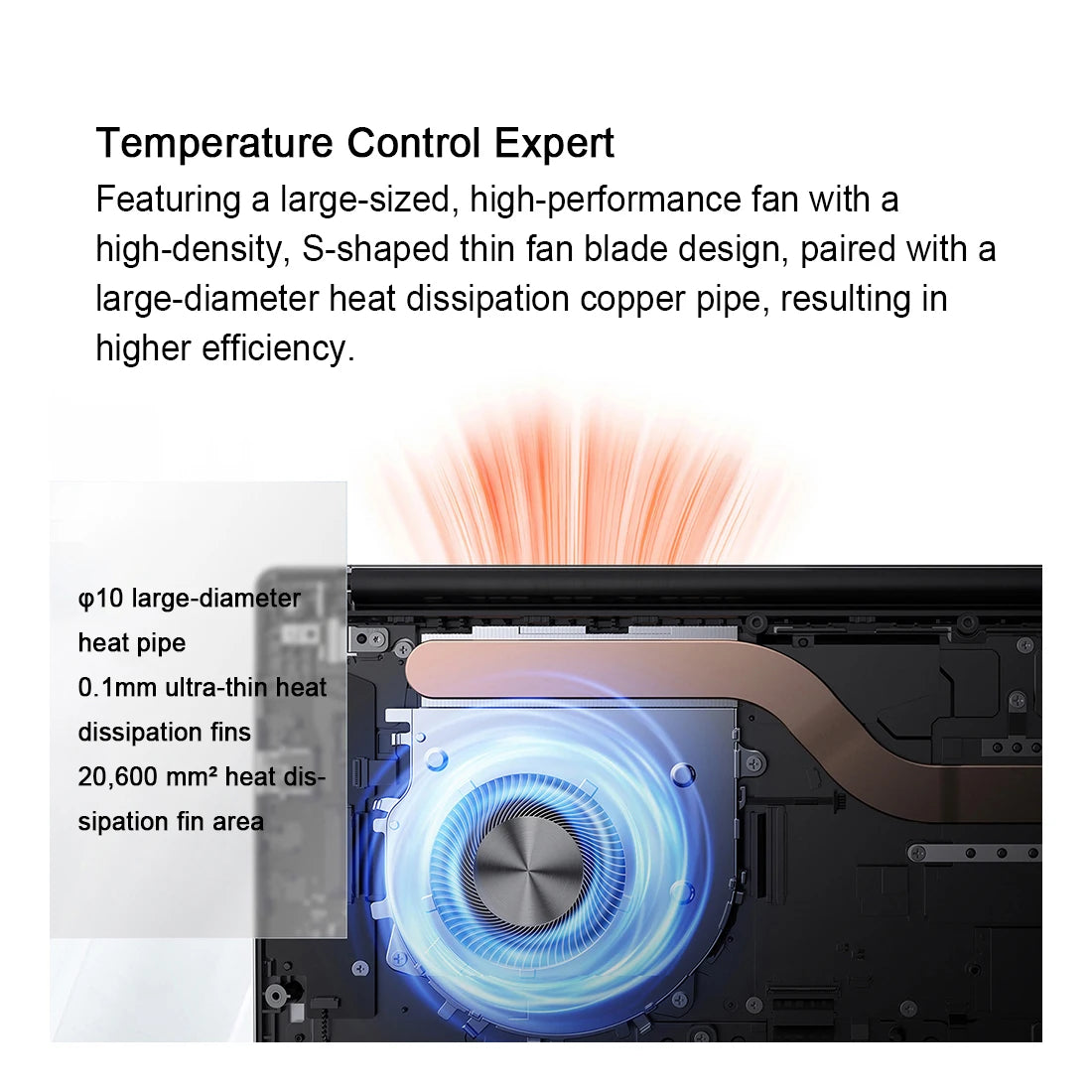 Featuring a large-sized, high-performance fan with a high-density, S-shaped thin fan blade design, paired with a large-diameter heat dissipation copper pipe, the machine's overall heat dissipation capability is significantly enhanced, resulting in higher efficiency.