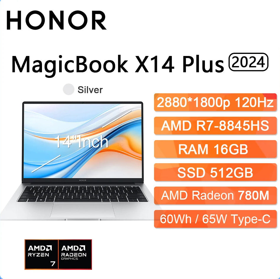 Discover the HONOR Laptop MagicBook X14 Plus 2024 14" Inch 2.8K 120Hz AMD Ryzen R7 8845HS 16/32GB 1TB Computer PC Notebook Ultrabook FMI-721 FHD60Hz 16GB 512GB Best Price 2025 | Munawar Tech at Munawar Tech, your online electronics store for carefully selected products at competitive prices. This laptop is designed to deliver reliable performance and a smooth user experience, making it a great choice for everyday use at home, work or on the go.