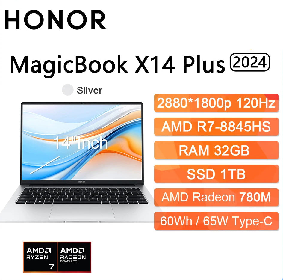 HONOR Laptop MagicBook X14 Plus 2024 14" Inch 2.8K 120Hz AMD Ryzen R7 8845HS 16/32GB 1TB Computer PC Notebook Ultrabook FMI-721 FHD60Hz 16GB 512GB Best Price 2025 | Munawar Tech