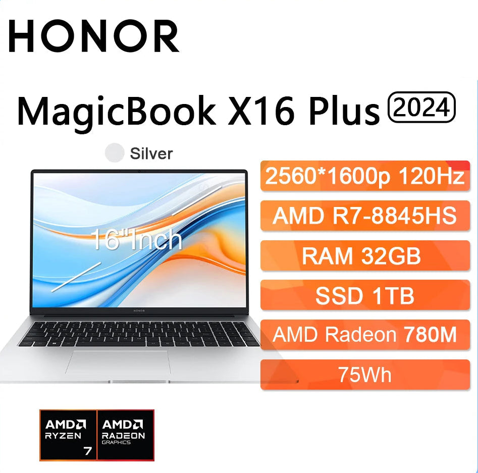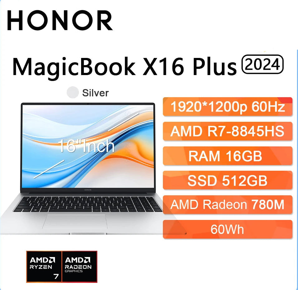 HONOR Laptop MagicBook X16 Plus 2024 BRI-721 16"Inch 2.5K 120Hz AMD Ryzen R7 8845HS 16/32GB 1TB Computer PC Notebook Ultrabook 16GB 512GB FHD60Hz Best Price 2025 | Munawar Tech