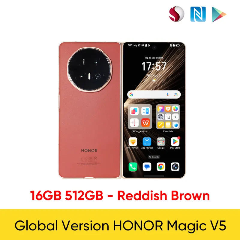 HONOR Magic V5 Global Version 5G Foldable Smartphone Snapdragon 8 Elite 7.95" LTPO OLED Display 5820mAh Battery 66W SuperCharge Reddish Brown Best Price 2025 | Munawar Tech