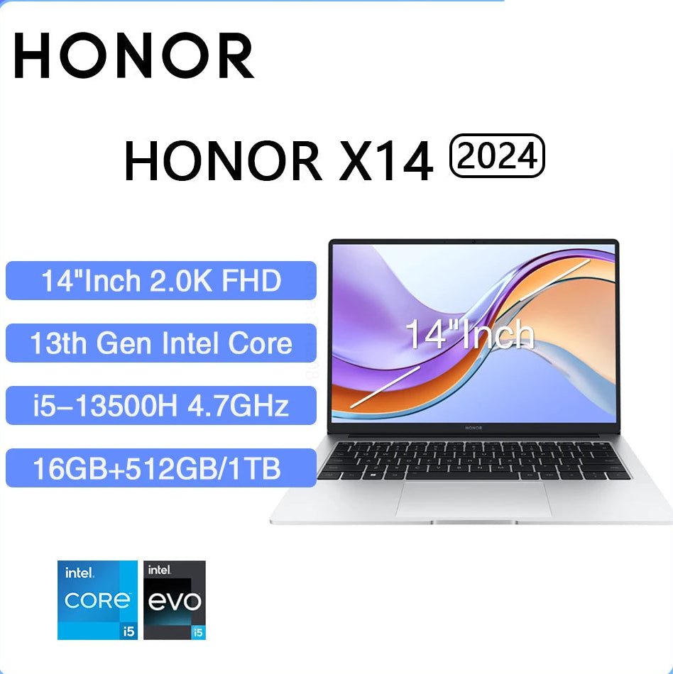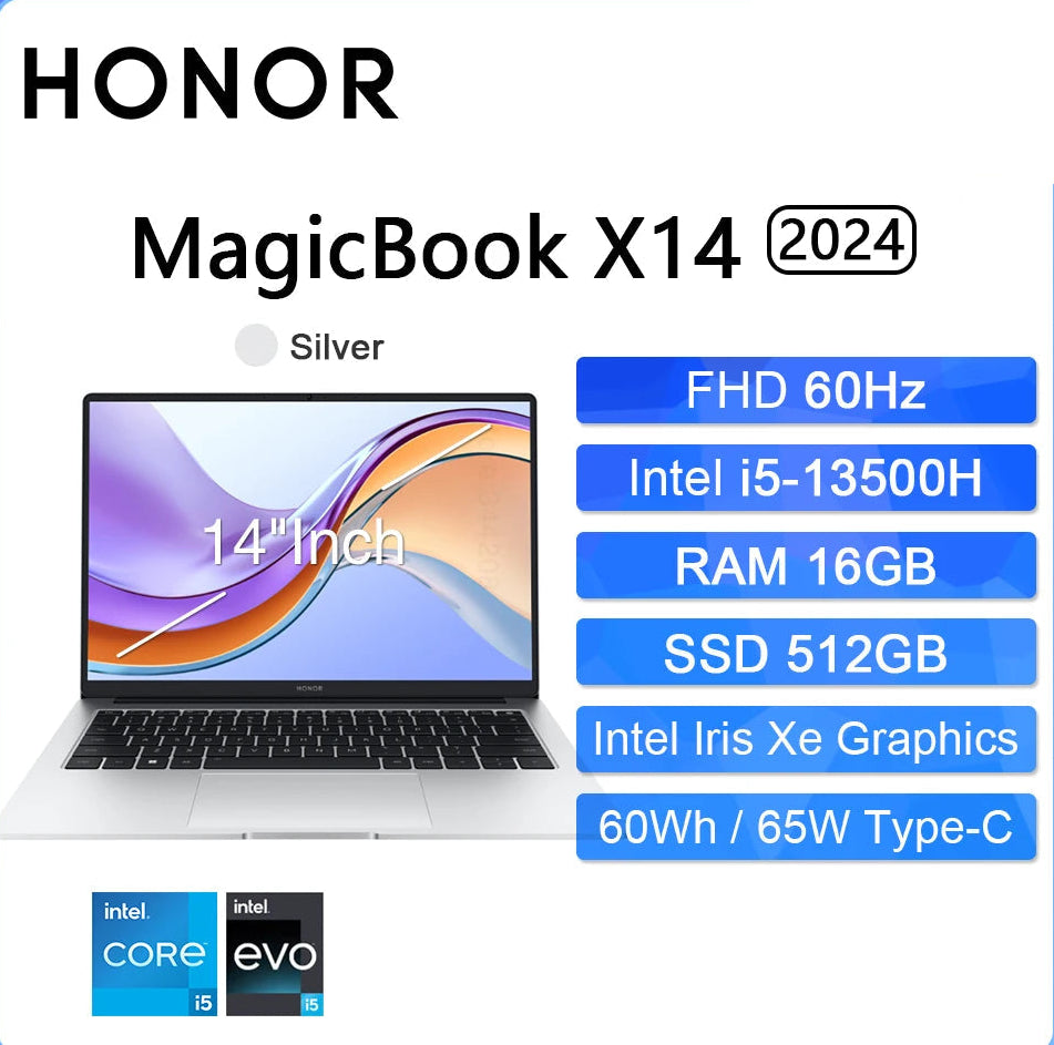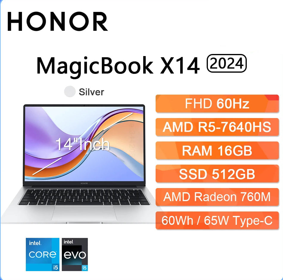HONOR MagicBook X14 Pro 2024 Laptop Intel Core i5 AMD Ryzen R5 16GB 512GB 1TB 14"Inch FHD Notebook Ultrabook Computer PC FRI-H56 i5 13420H 16GB 512GB Best Price 2025 | Munawar Tech