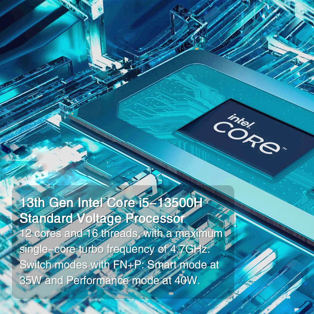 2. 13th Gen Intel Core Standard Voltage Processor: Allows seamless switching between performance modes, with Smart Mode at 35W and High-Performance Mode at 40W.