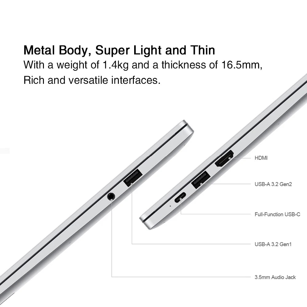 With a weight of 1.4kg and a thickness of 16.5mm, this laptop features a metal body that is both lightweight and thin. The internal structure is meticulously designed, with every detail finely polished.
