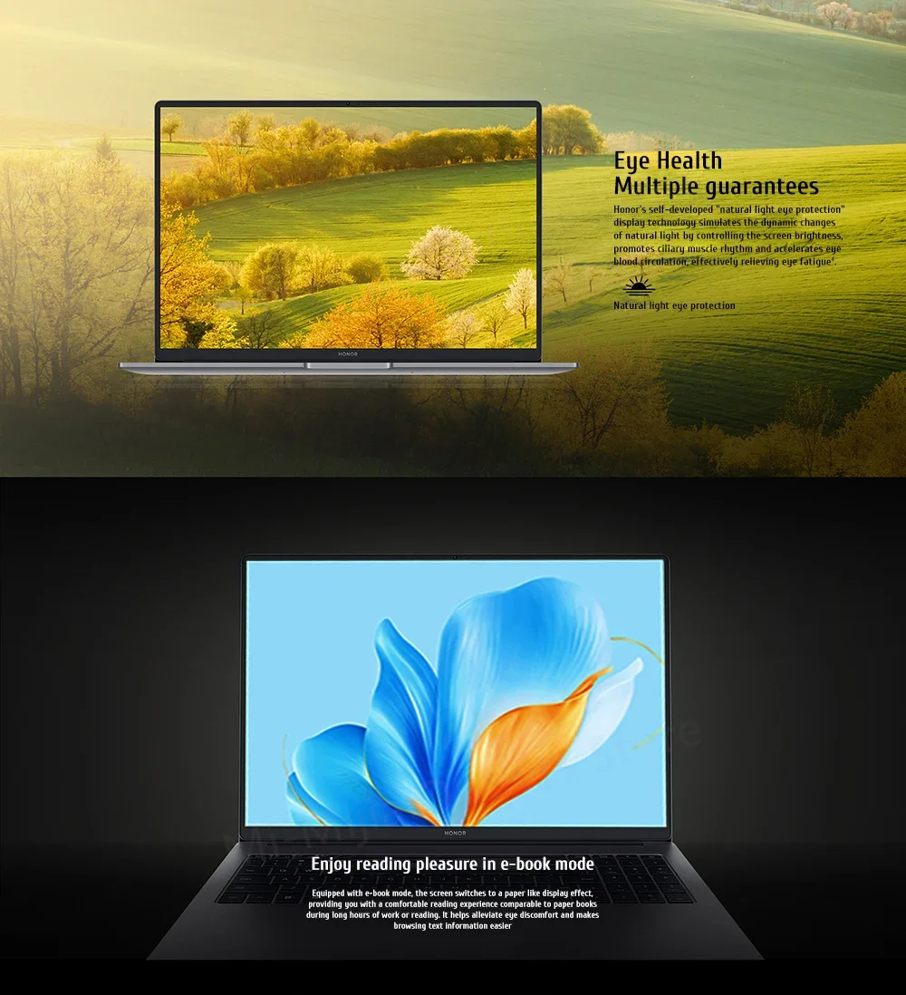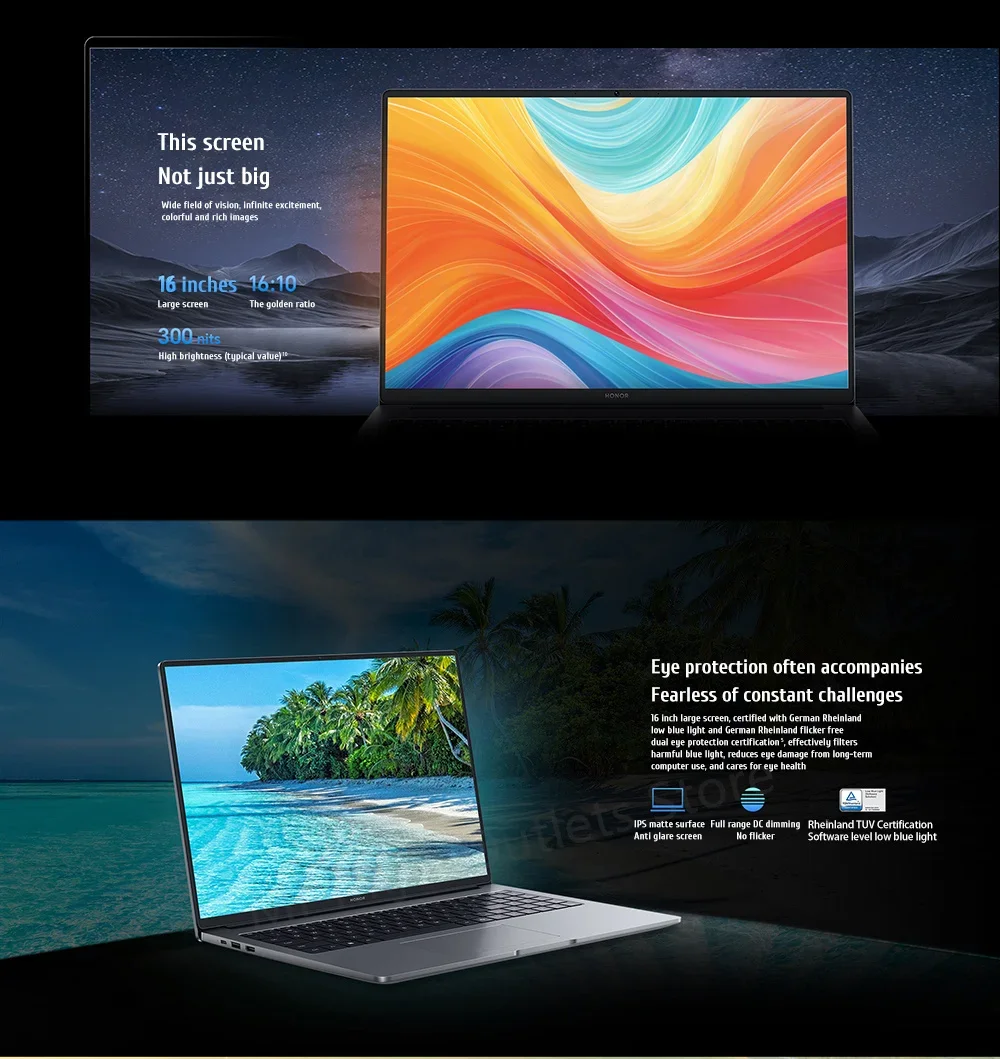 The 16 inch large screen has passed the dual eye protection certification of German Rheinland low blue light and German Rheinland flicker free, effectively filtering harmful blue light, reducing the harm of long-term computer use to the eyes, and caring for eye health.