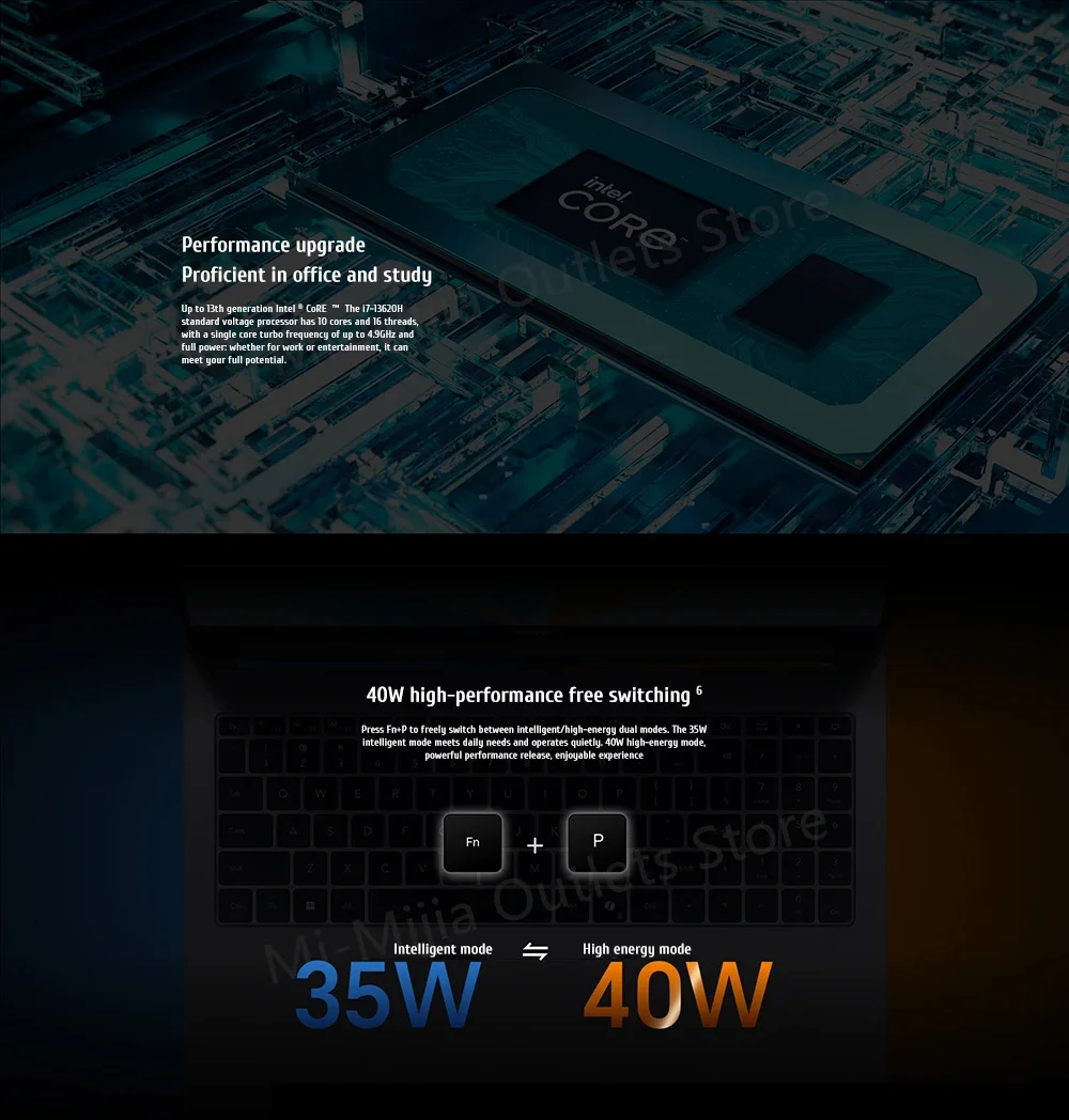Equipped with a 13th generation Intel Core i7-13620H standard voltage processor, 10 cores with 16 threads, and a single core turbo frequency of up to 4.9GHz, it is fully powered and can meet your full potential for work or entertainment.