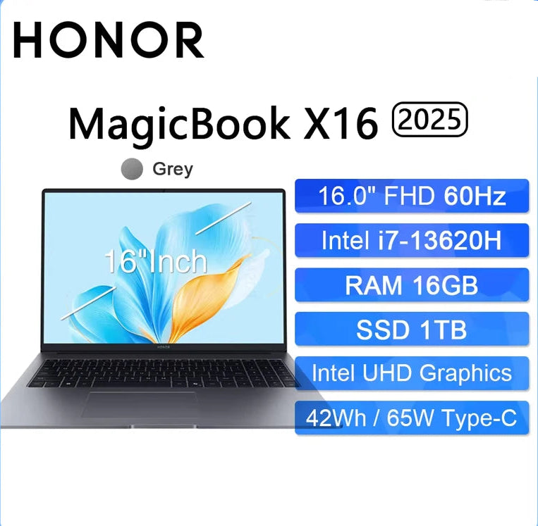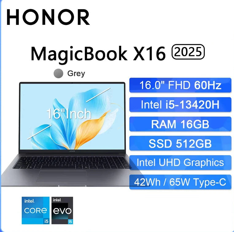 HONOR MagicBook X16 2025 Laptop Intel Core i5-13420H i7-13620H RAM 16GB SSD 512GB 1TB 16"Inch FHD Notebook Ultrabook Computer PC i5 13420H 8GB 512GB Best Price 2025 | Munawar Tech