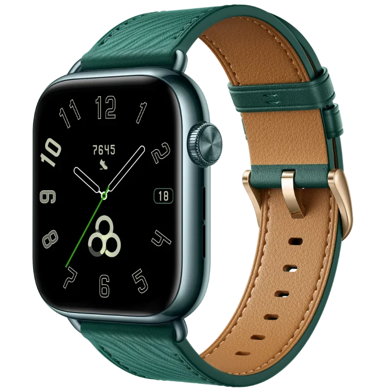 Straps: Silicone rubber straps (Morning Glow Gold and Obsidian Black versions), leather strap (Pine Green version)