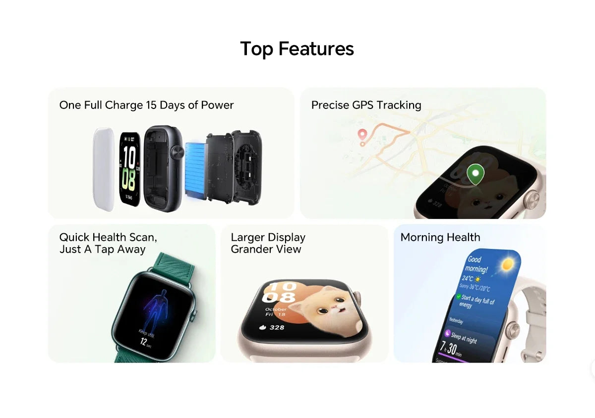 Screen: 1.85-inch AMOLED color screen with 450 x 390 pixels and 322PPI