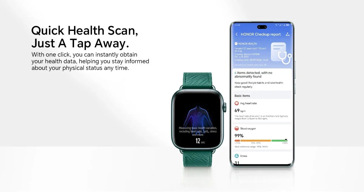 Honor Watch 5 Smartwatch with 1.85" AMOLED, Heart Rate + Sleep + Stress Monitors, IOS/Android