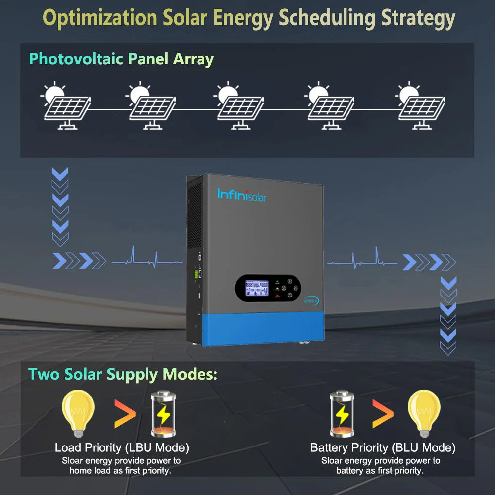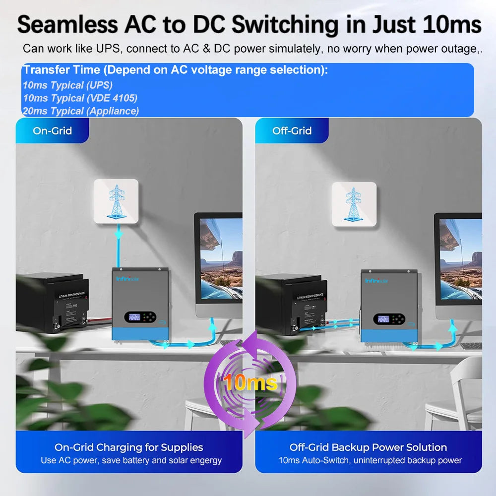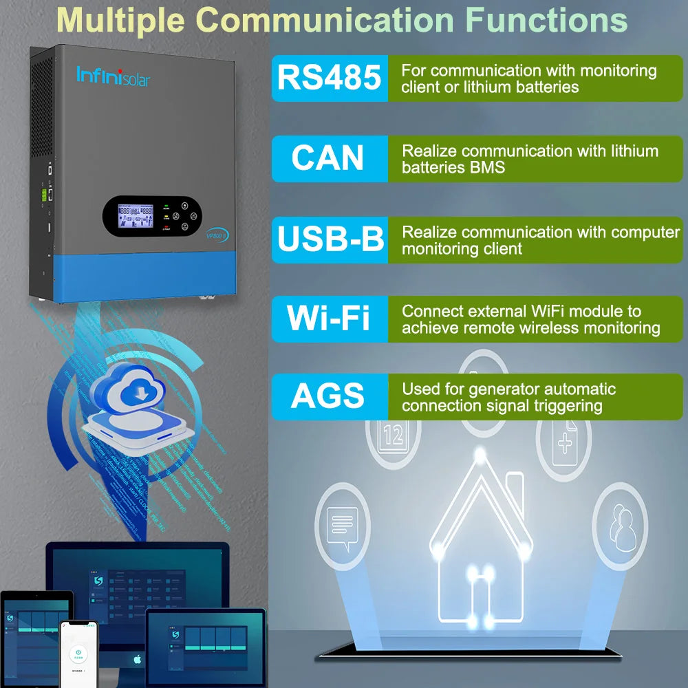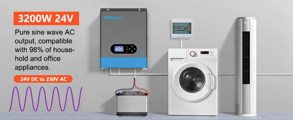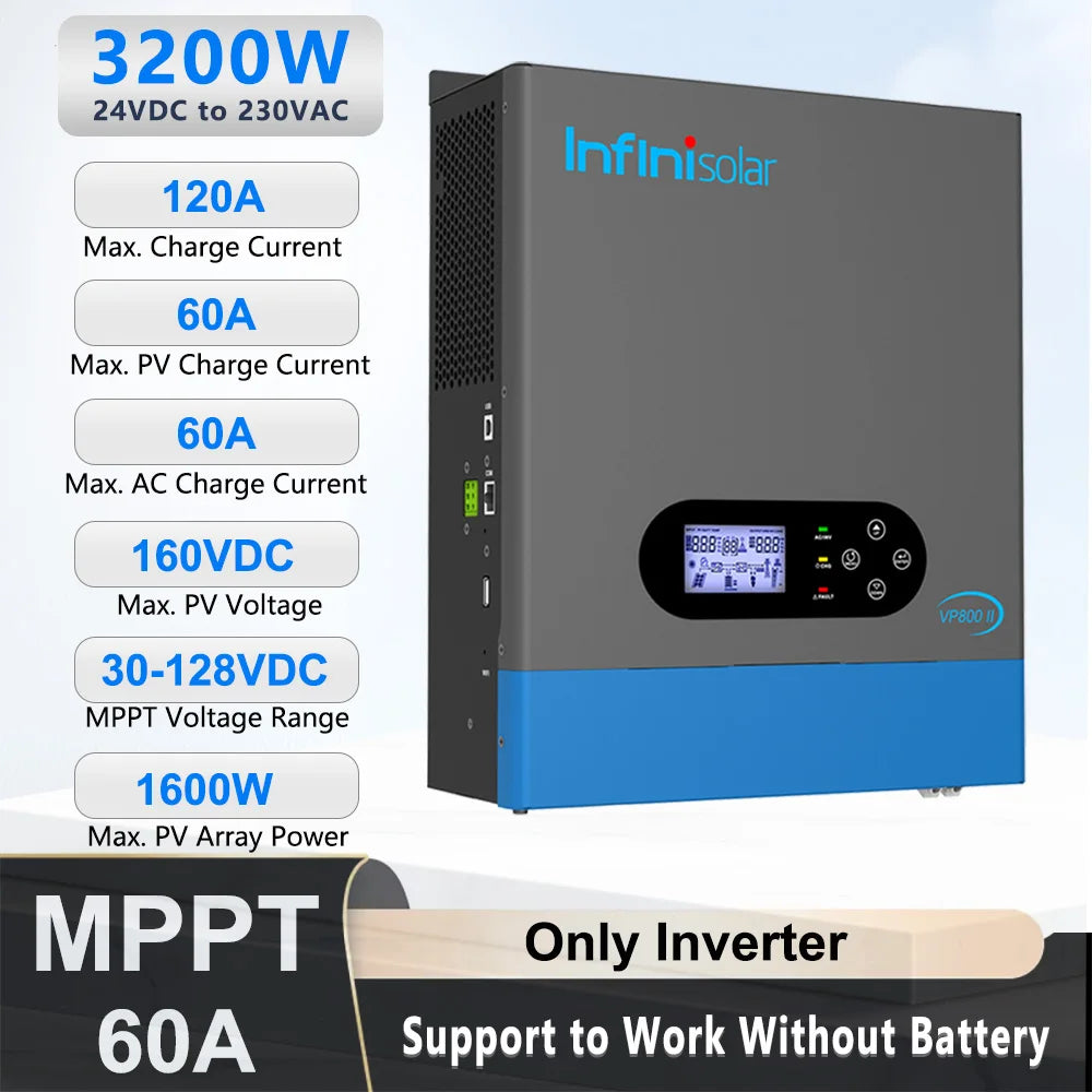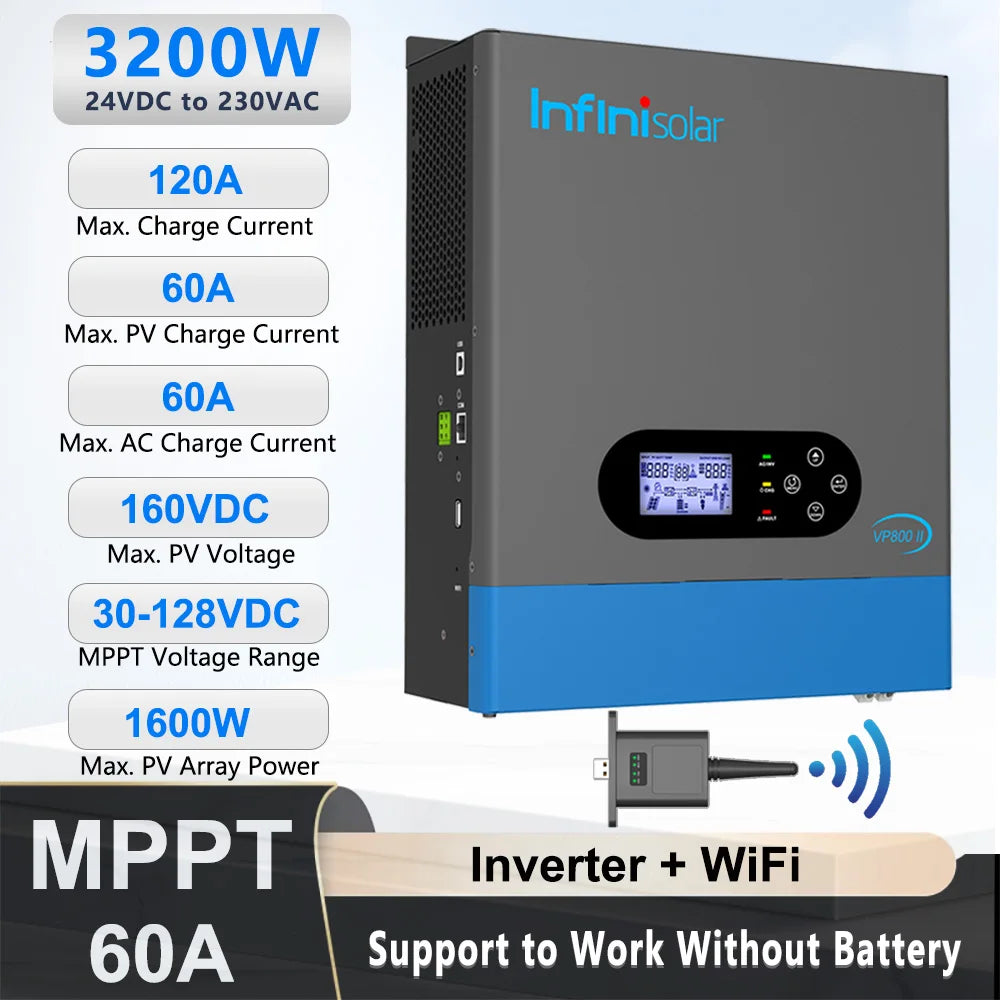 Infinisolar 3.2KW Off Grid Hybrid Solar Inverter 24V to 230V Pure Sine Wave MPPT Photovoltaic Inverters Support BMS RS485 WiFi