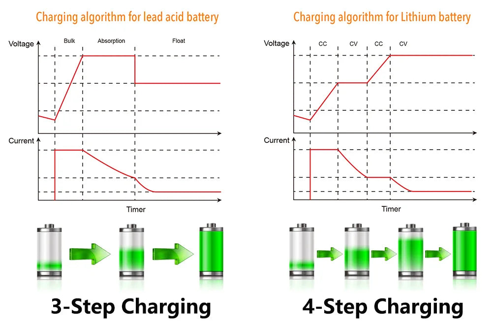 Compared to other inverters, we have adopted a 3-step charging algorithm for lead-acid battery, a 4-step charging algorithm for Lithium battery, which unlocks 30% longer battery life with precision parameter tuning.