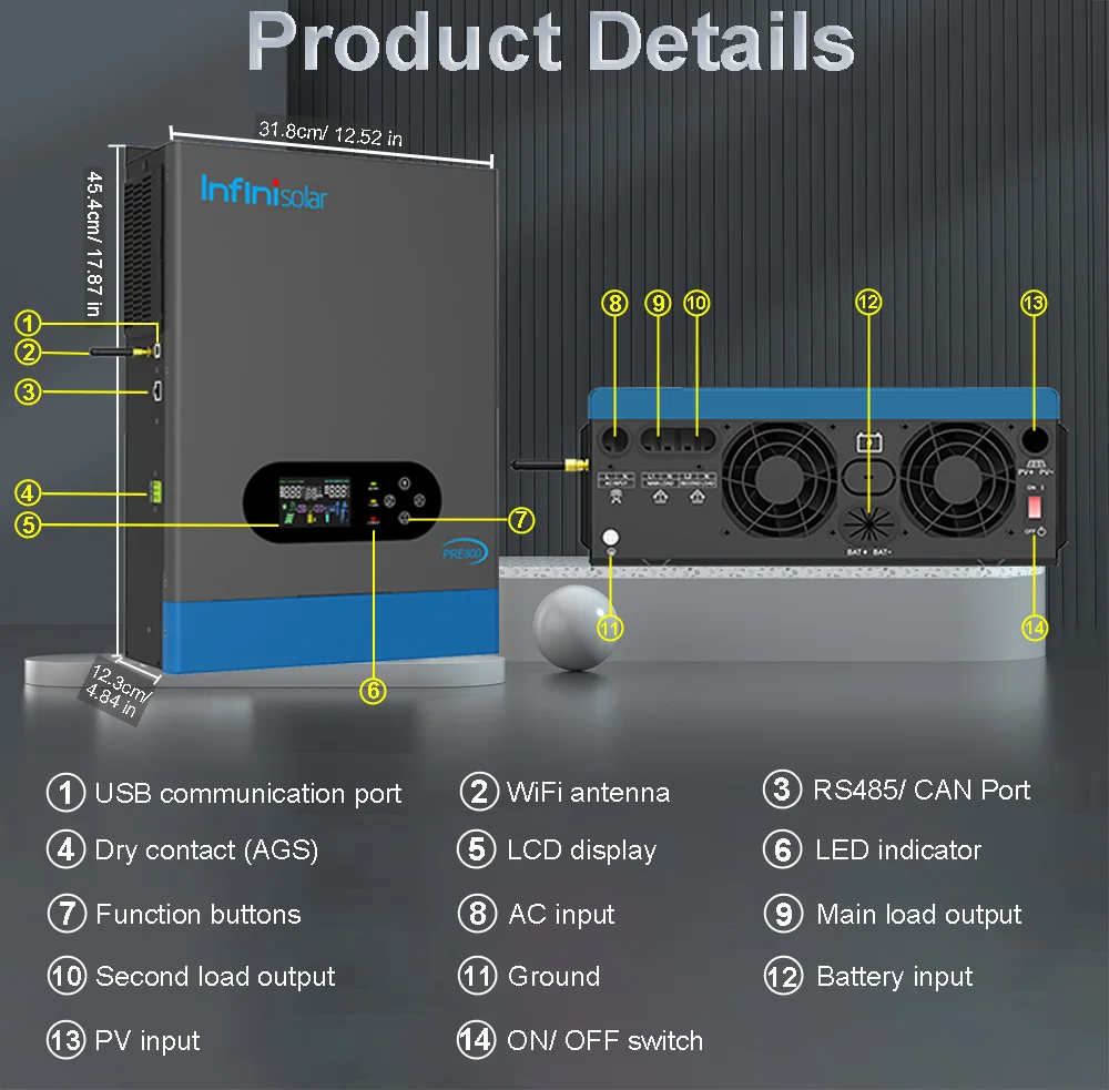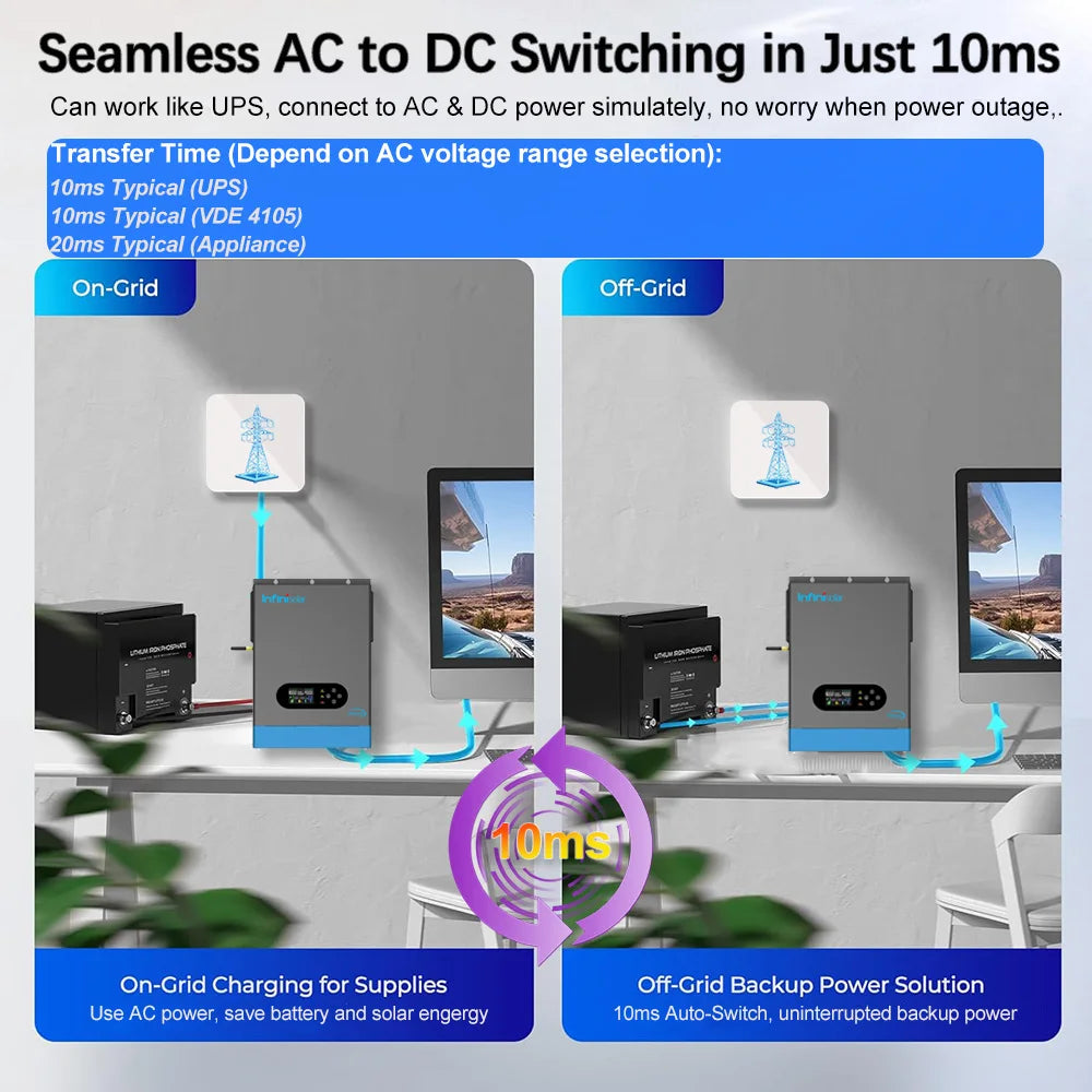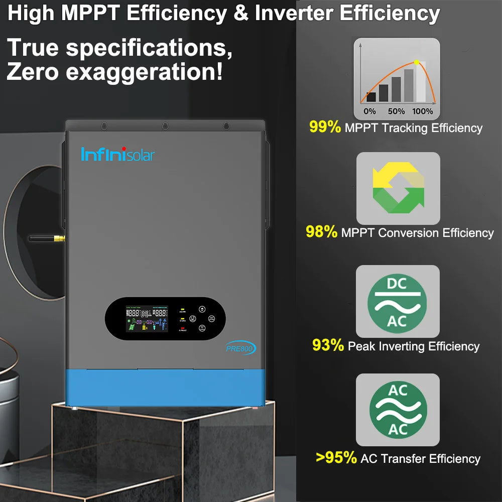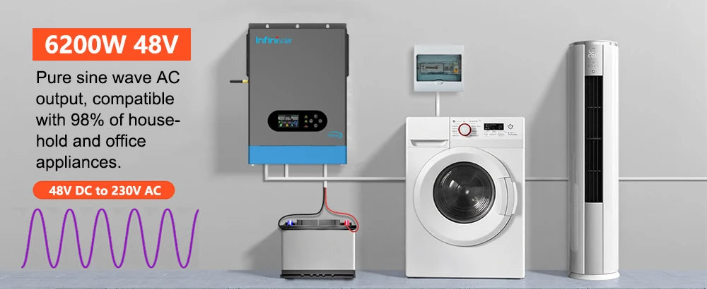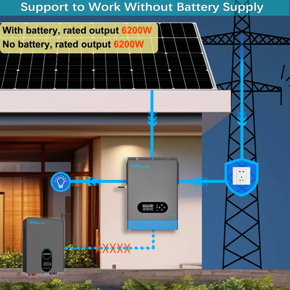 Infinisolar 6.2KW Hybrid Solar Inverter With Built-In WiFi 100A MPPT 48V to 230V Dual AC Output Off Grid Photovoltaic Inverter