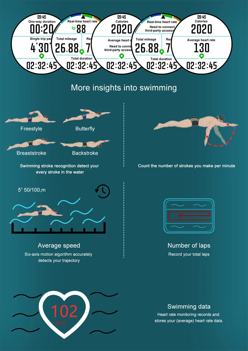 ➤Waterproof grade: 5ATM (50m depth waterproof)
