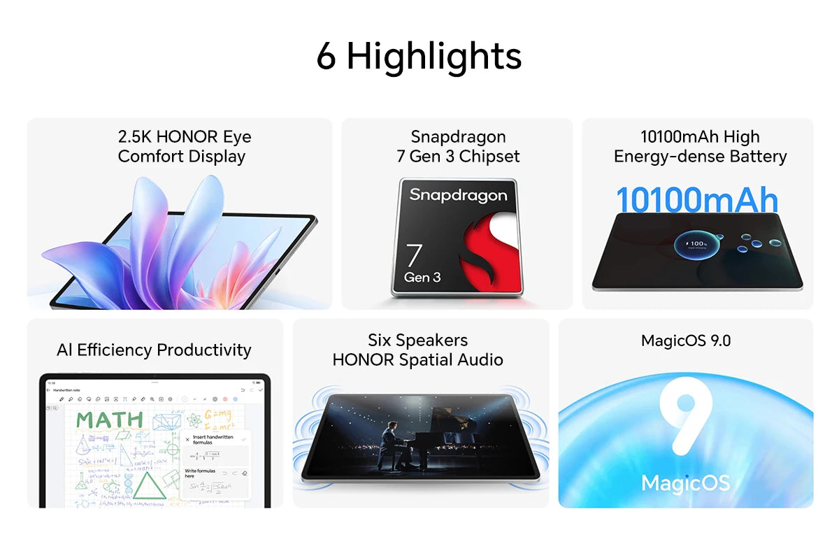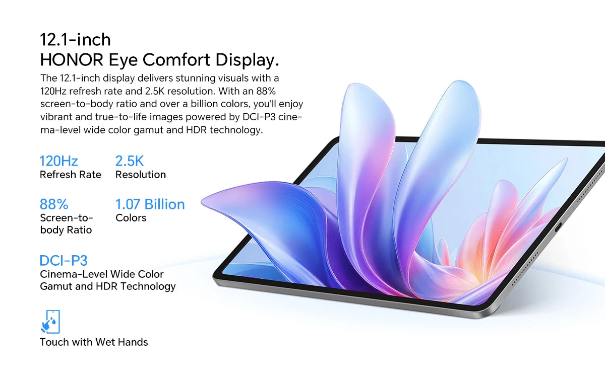 Honor Pad 10 8GB+256GB WIFI Global Version 12.1 inch 120Hz 2.5K Eye Comfort Display Snapdragon7 Gen 3 10100mAh Battery