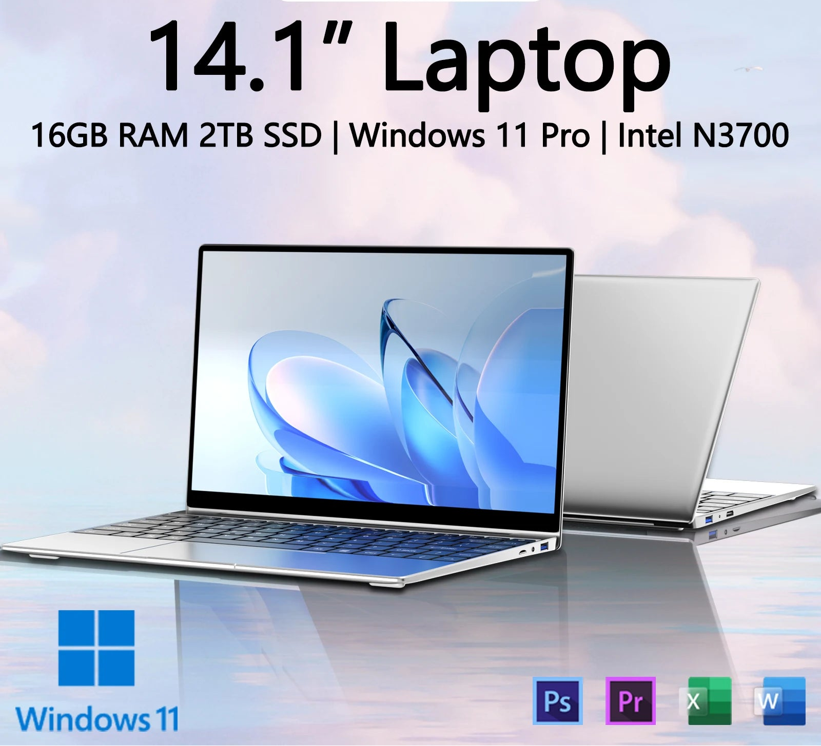 New Ultra Slim Laptop 14.1" 16GB RAM 2TB SSD Intel N3700 Gaming PC 1920*1080 Display Office Study Computer PC Windows 11 Pro 16GB 512GB Best Price 2025 | Munawar Tech