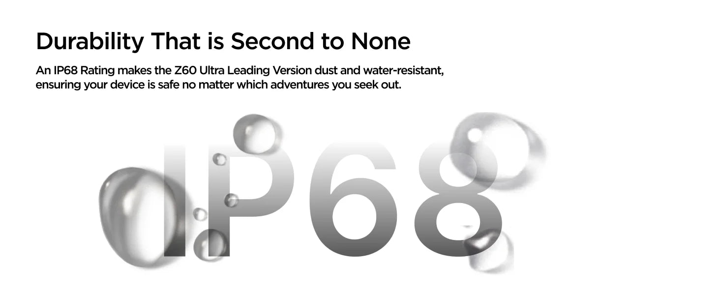 >In the box: z60 ultra Leading Version*1,Power Charger *1,Type C Cable *1,Case *1,Screen protector*1,SIM Card Tool *1,Quick Start Guide *1,Warranty Card *1