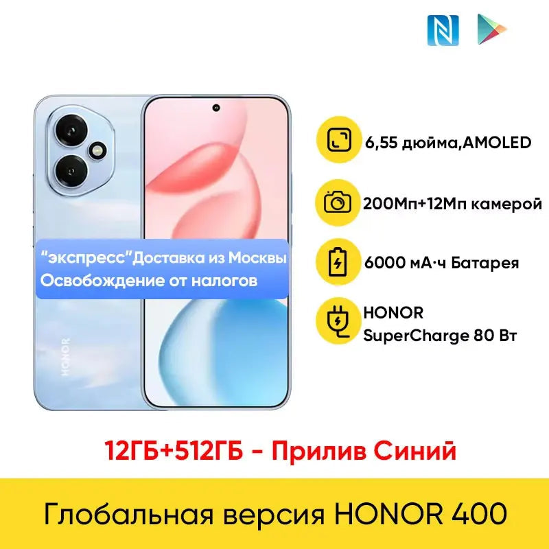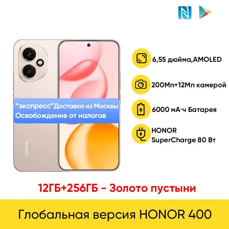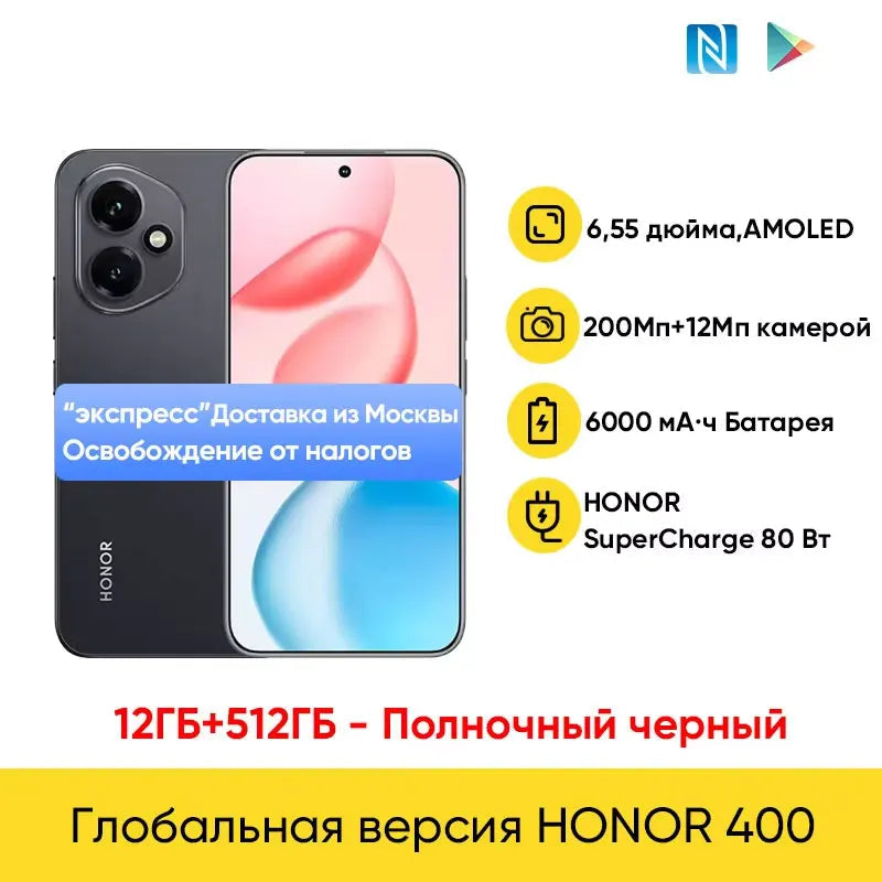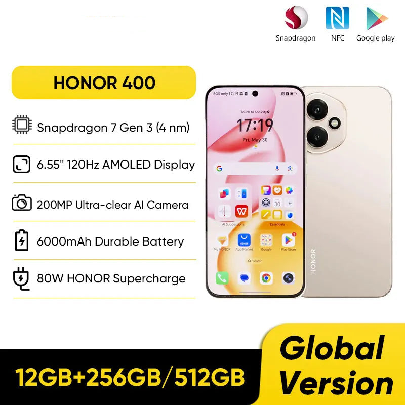 Honor 400 Global Version 5G Smartphone 6.55" 120Hz AMOLED Display Snapdragon 7 Gen 3 200MP 6000mAh 80W Super Charge NFC