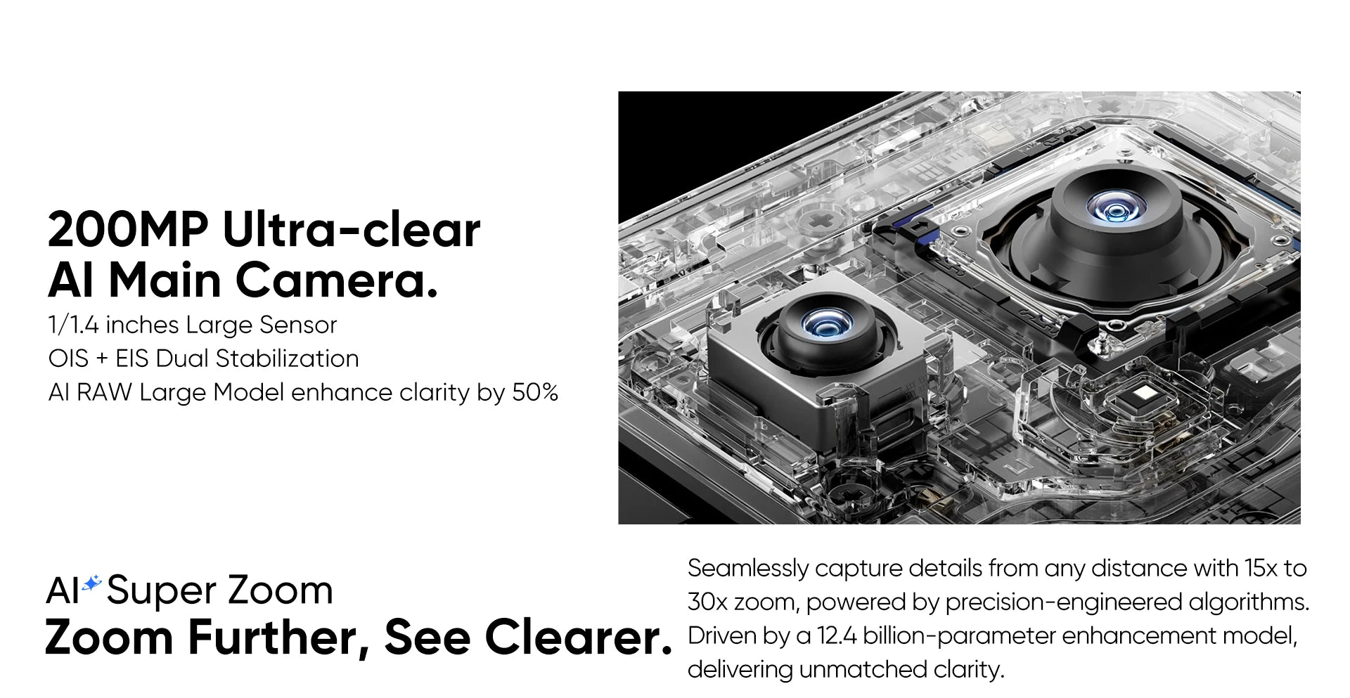 Rear Camera : 200MP Ultra-clear AI Main Camera(f/1.9, OIS);