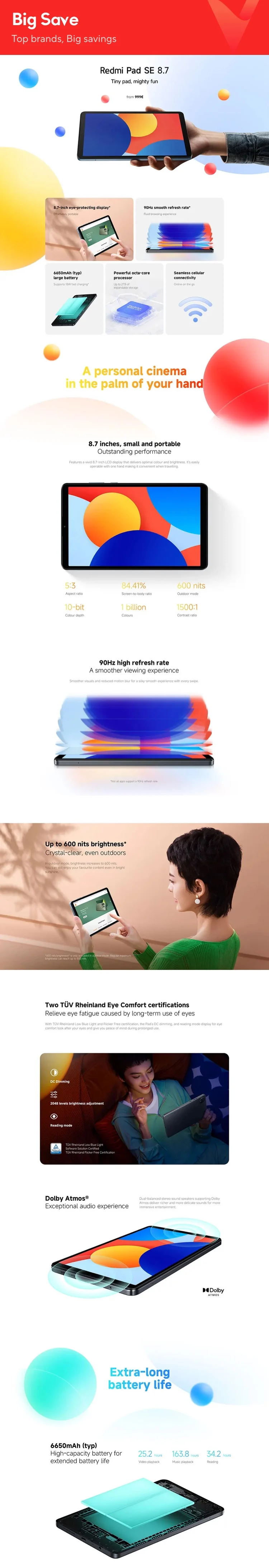 Xiaomi Redmi Pad SE Global Version 8.7" 64GB MediaTek Helio G85 90HZ 8.7" Screen 6650mAh Android U Tablet Mi Pad