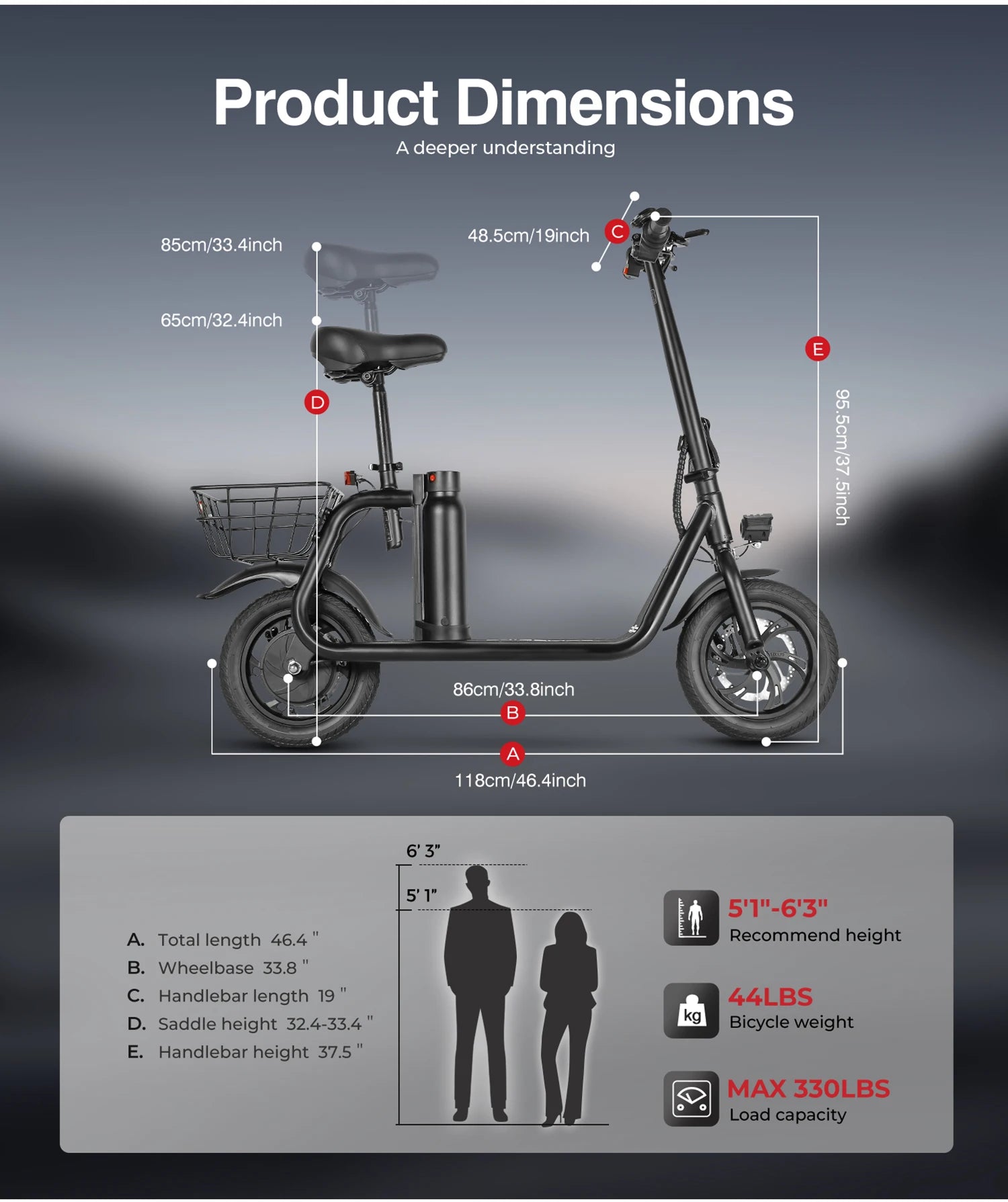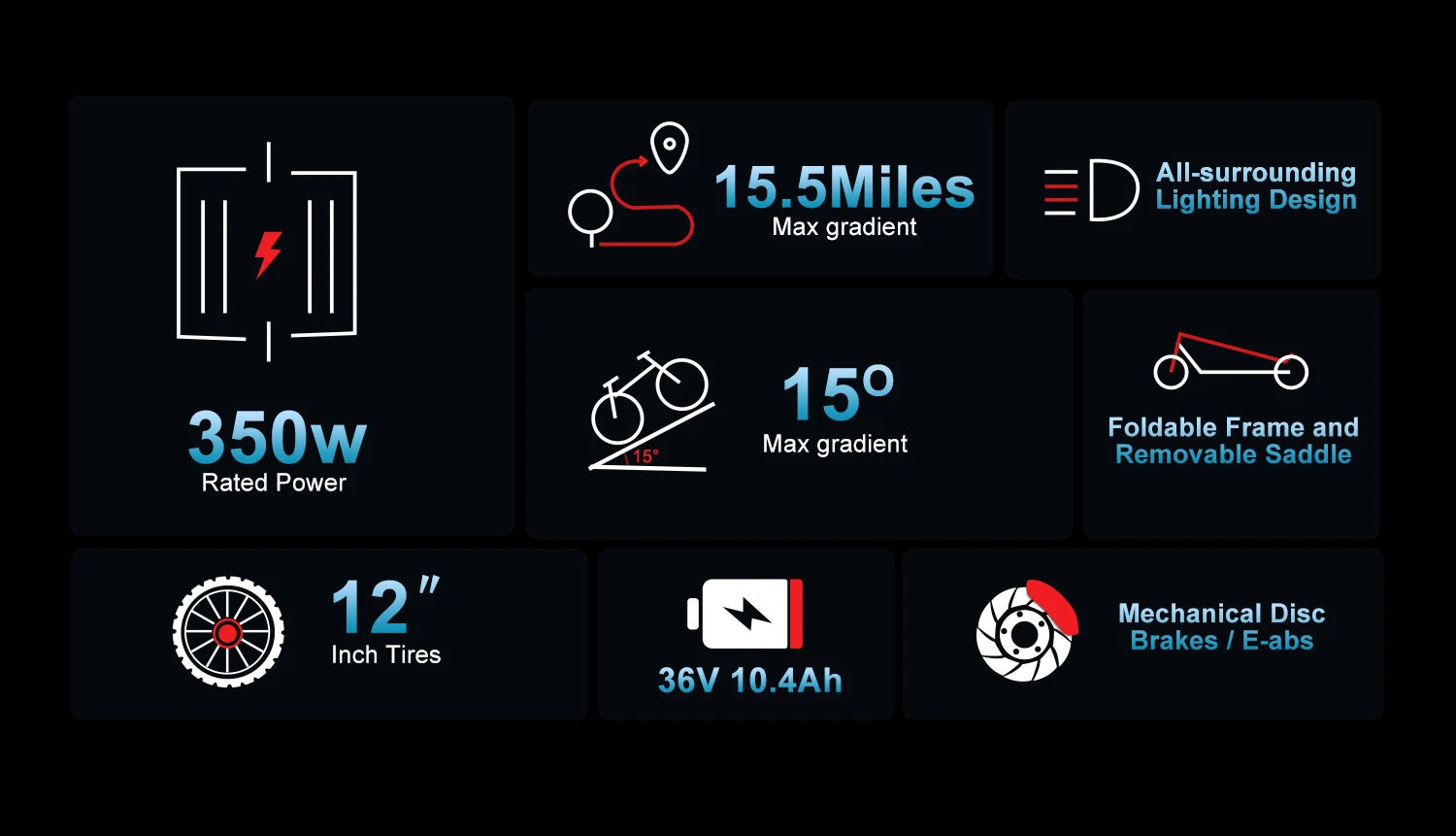 Samebike SM-CO1 adult electric bike 350W city ebike 36V7.8AH 12 inch commuter E-bike