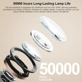 The projector is equipped with powerful fans and a cooling system, extending the lamp life to 50000 hours, ensuring long-lasting performance.
