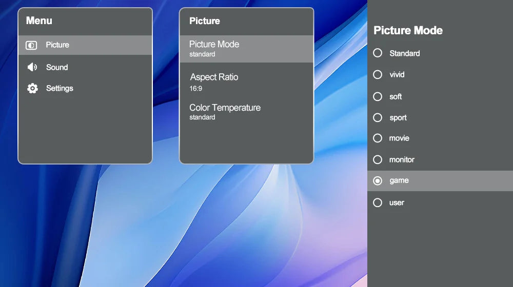 A: Enter HDMI and press the settings button on the remote control to select the game mode.