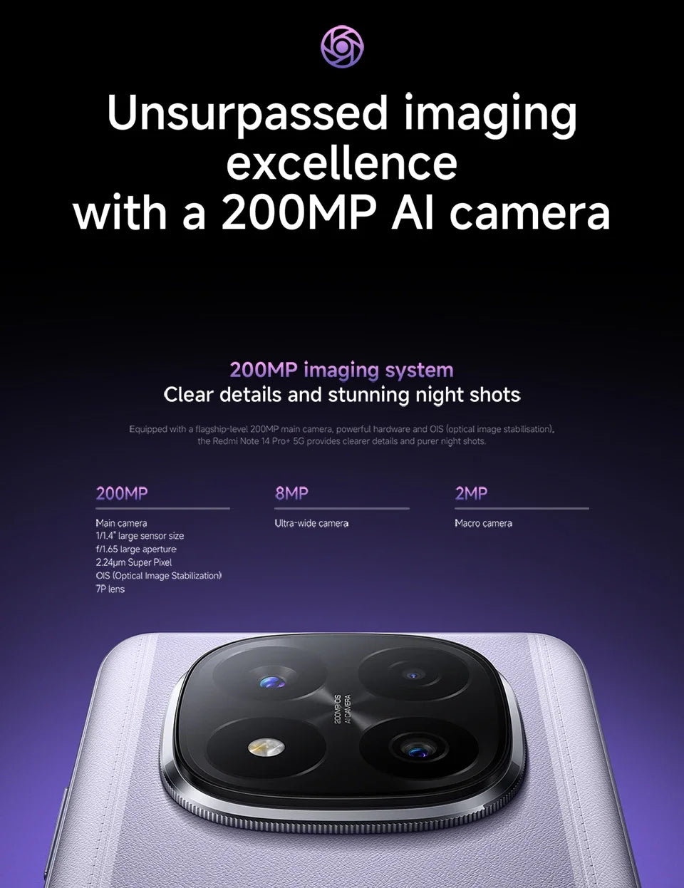 Xiaomi Redmi Note 14 Pro Plus UK Version 5G Smartphone 120W Hyper Charge 200MP OIS Camera 6.67" AMOLED Display Snapdragon 7s Gen 3