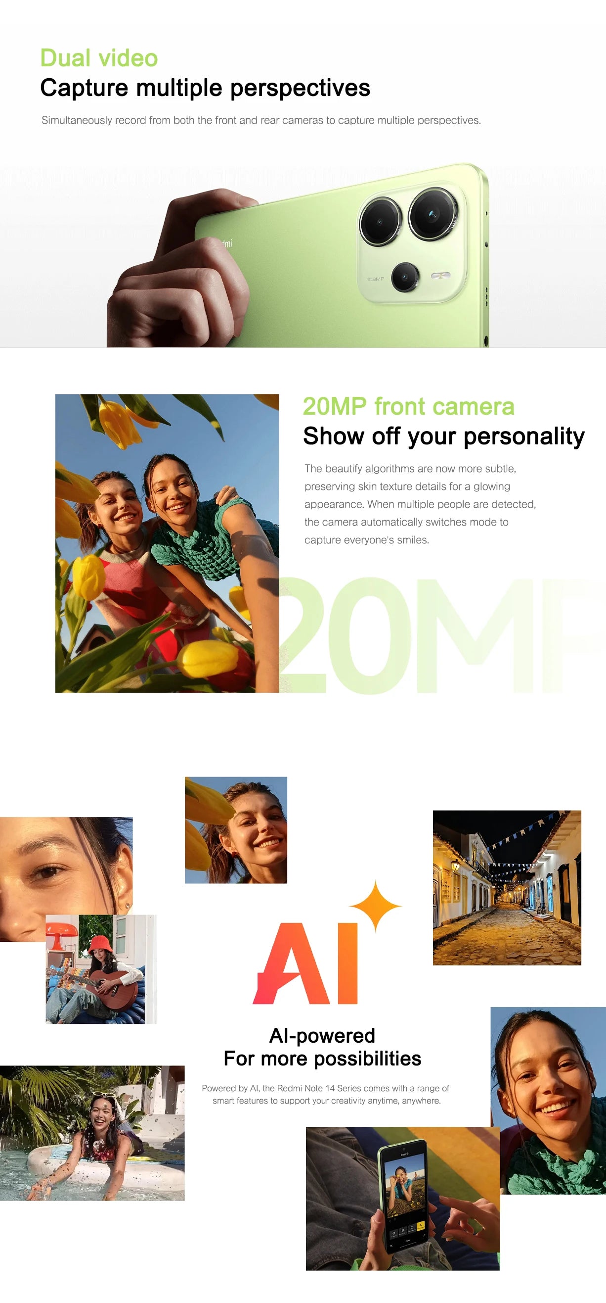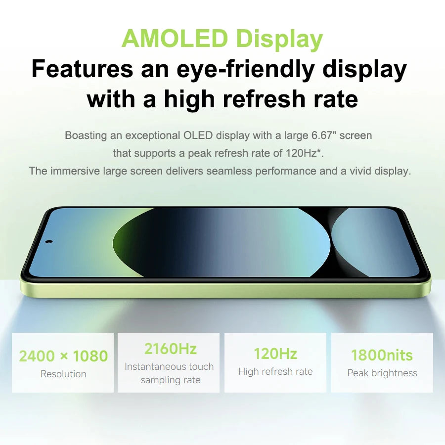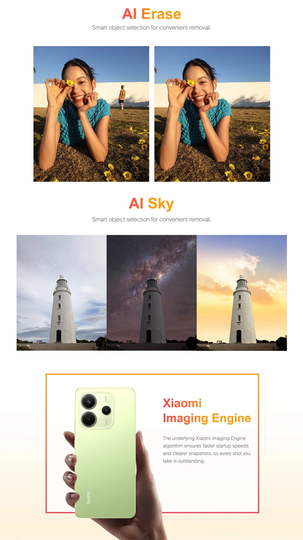 *OS:Powered by Xiaomi HyperOS, Support Multi-Language and Google Play, In-screen fingerprint sensor,AI Face Unlock