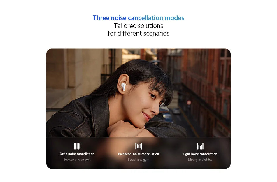Supports three gear noise reduction and transparency mode adjustment, allowing