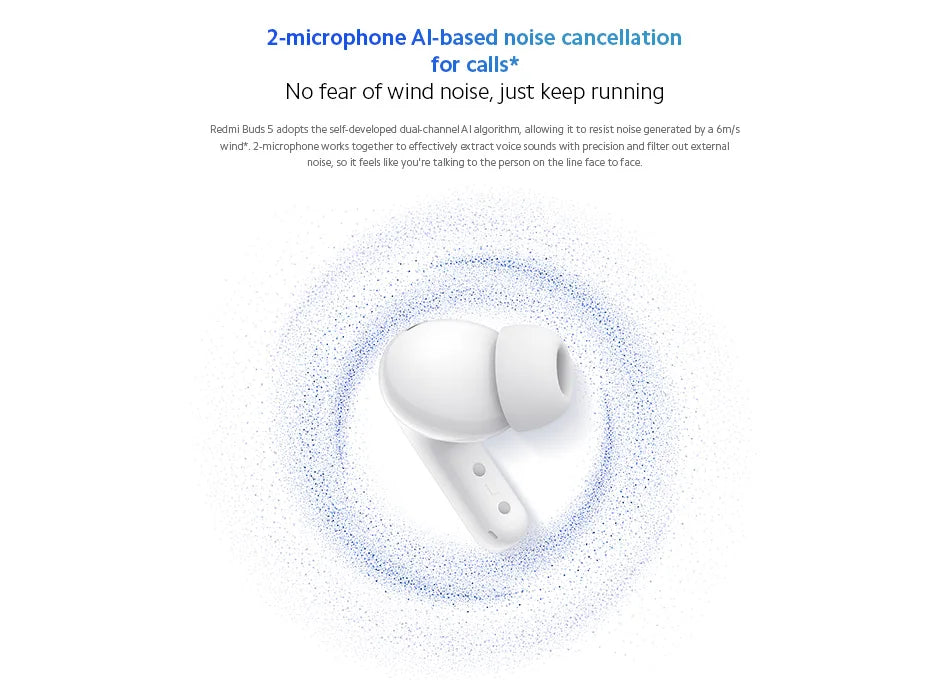 Redmi Buds 5 adopts the self-developed dual-channel Al algorithm,